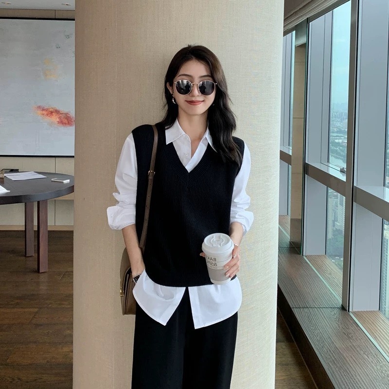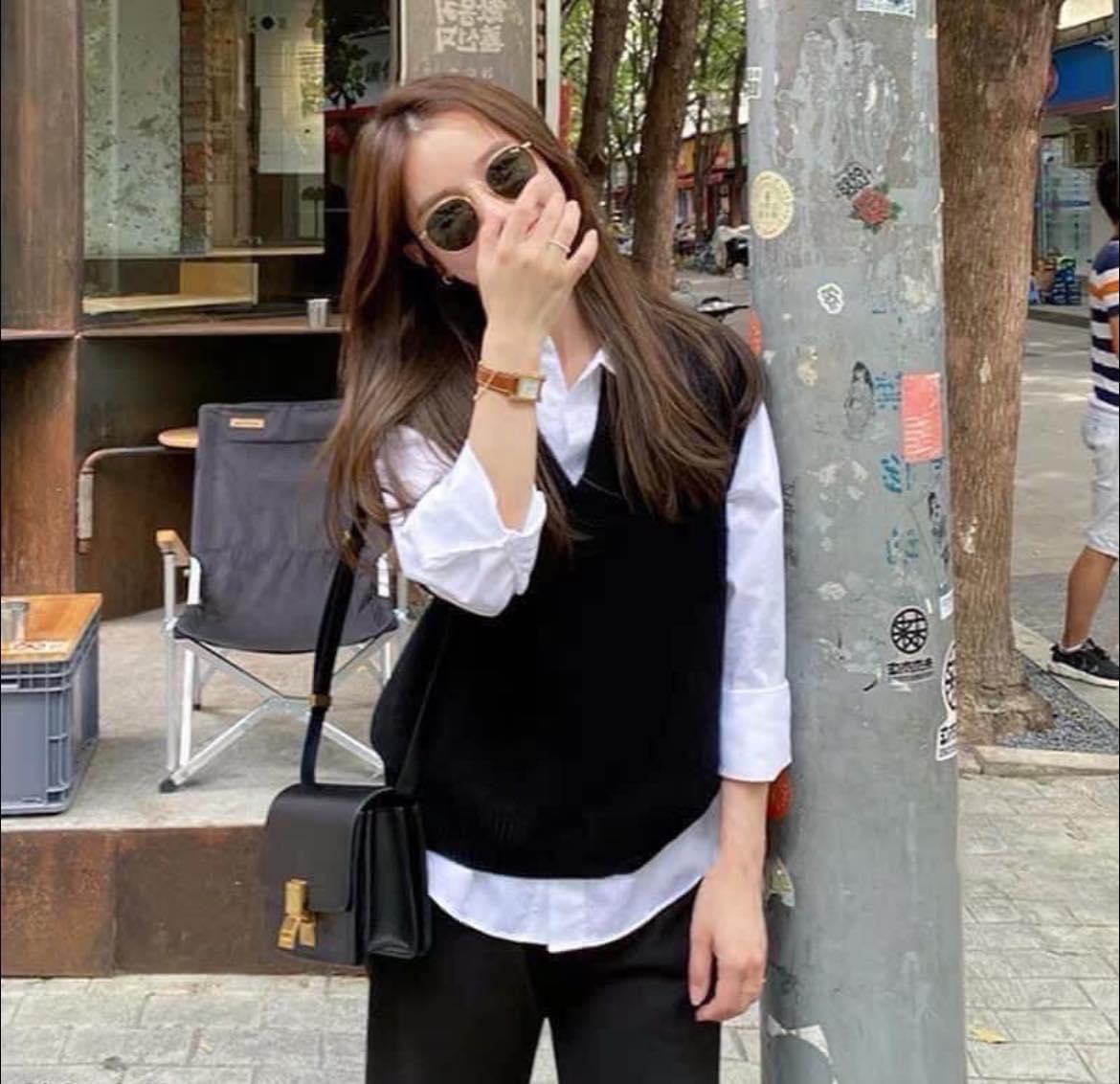 Áo này mix chung áo sơ mi hoặc váy voan hoa nhí chuẩn luôn ạ!! Vào thu cái mặc đc luôn chất len mềm form xuông trông Hàn xẻng lắm ạh.