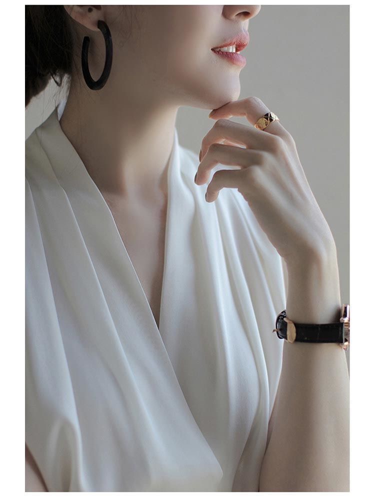 Chất lụa satin mềm, cổ V quyến rũ , mix với chân váy ,quần ống sớ rất duyên dáng.
