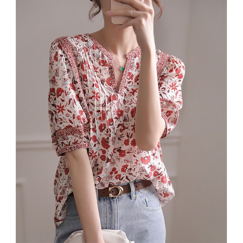 Dáng áo suông nhẹ, tay bồng và chi tiết may nếp gấp phần ngực áo. Ngày hè chỉ đơn giản mix cùng quần short hay jean đều xinh hợp nhãn ạ.