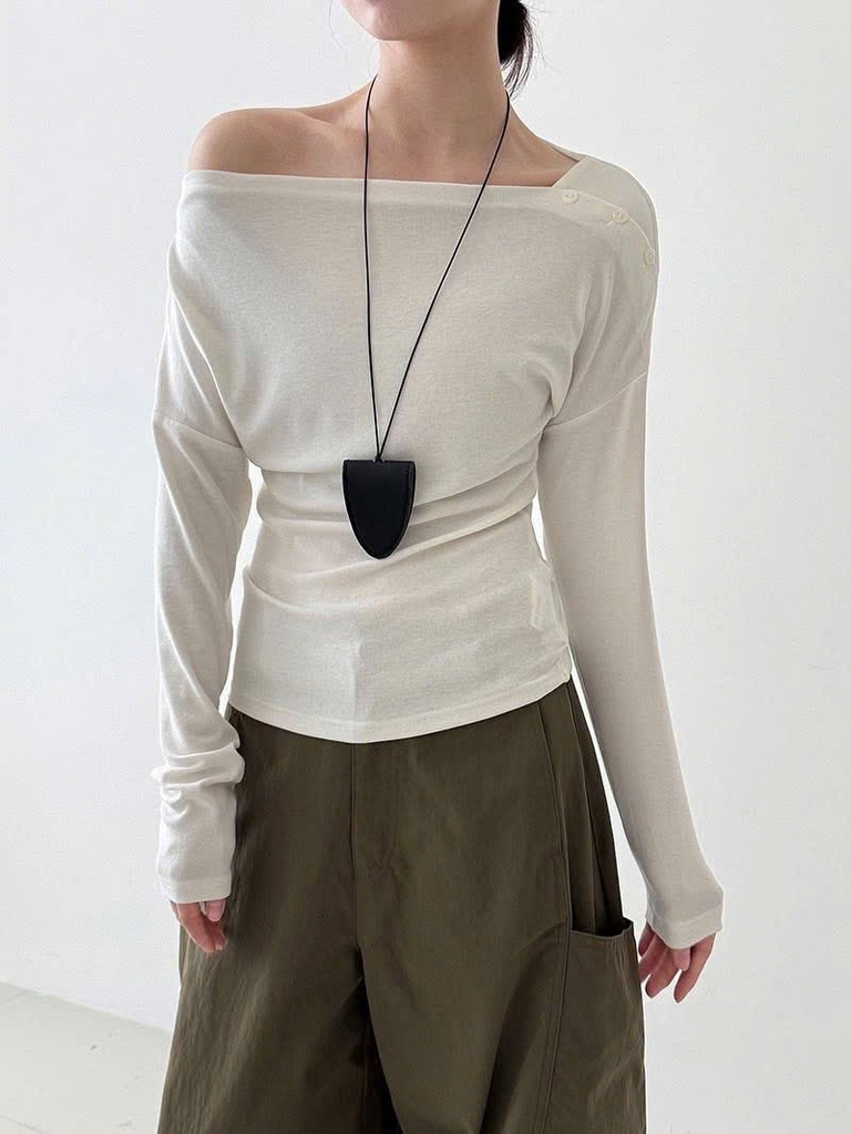 ✨ Áo thun cổ rộng lệch nút vai H25110307 – Hàng Hàn sang xịn mịn ✨