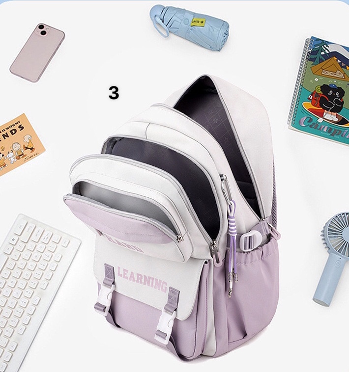 👉🏻Balo có nhiều ngăn đựng với không gian lớn đựng được nhiều sách vở và đồ cá nhân hơn. Chất vải chống thấm nước tốt, đi trời mưa không lo đồ đạc bị ướt, rất bền màu.