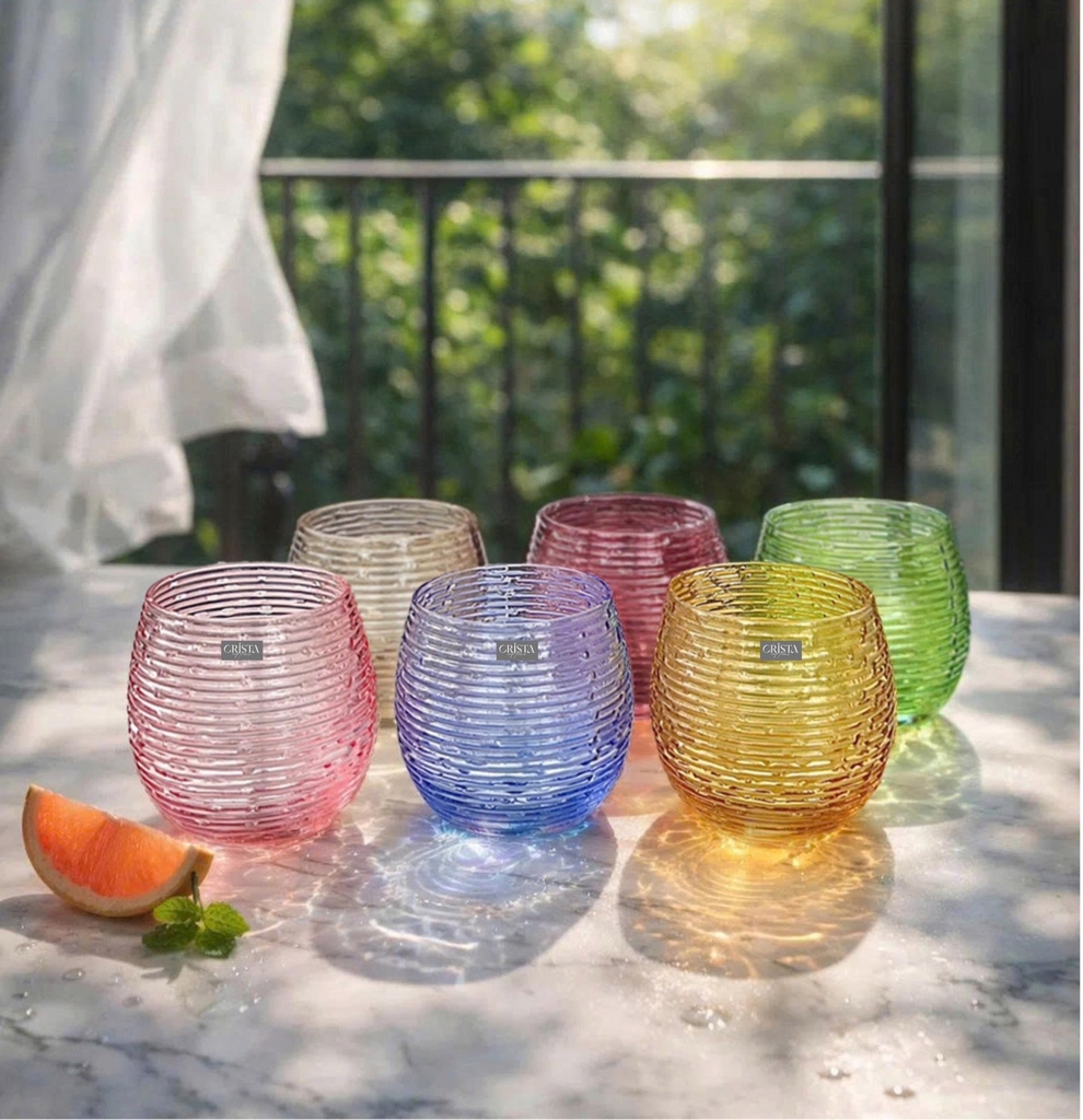 🌈🌈🌈 BỘ 6 CỐC THỦY TINH DÁNG BẦU VÂN NGANG 300ML CRISTA HOME, 60254