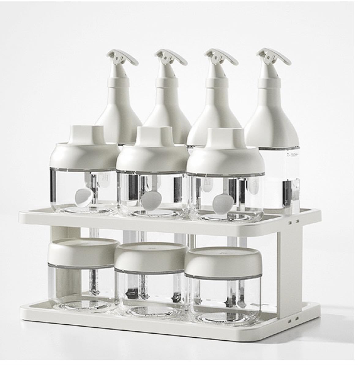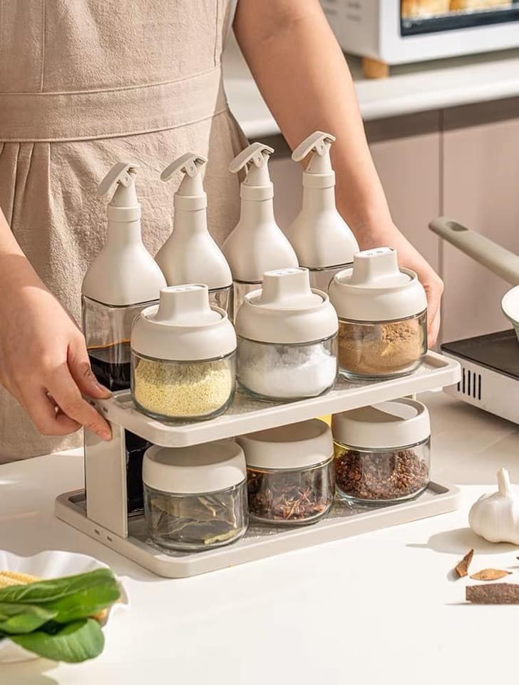 4 chai đựng dầu mắm, 6 hũ gia vị khô, kèm 1 kệ đựng mà chỉ có #339k/1 set thoai ạ