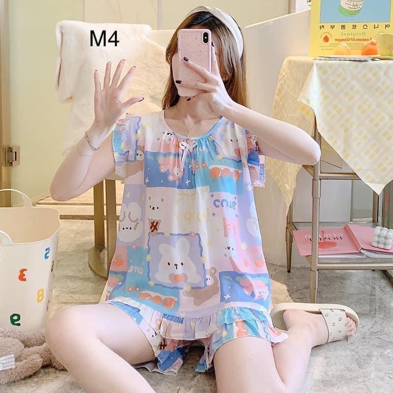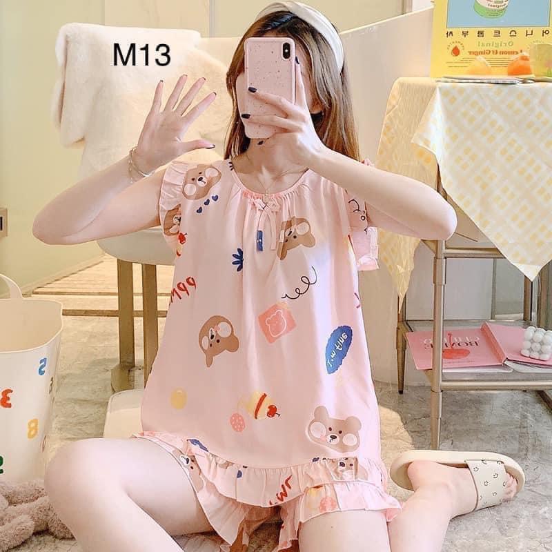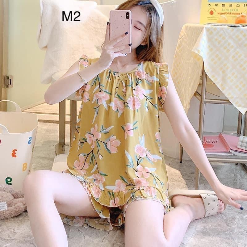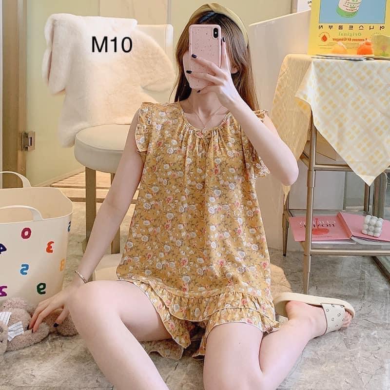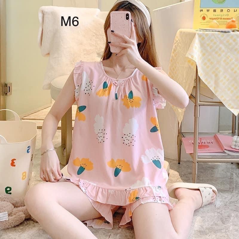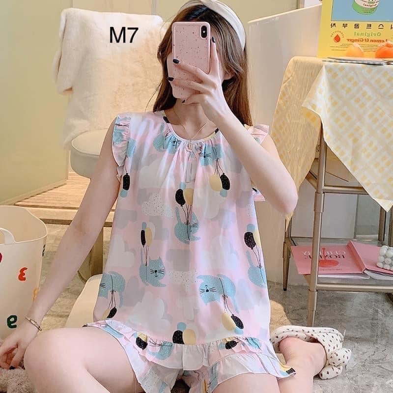 Thiết kế áo sát nách tay cánh tiên + quần đùi bèo gấu. Gì chứ mùa hè cứ bộ lanh mặc ở nhà là đỉnh mát nhất rồi ạ.