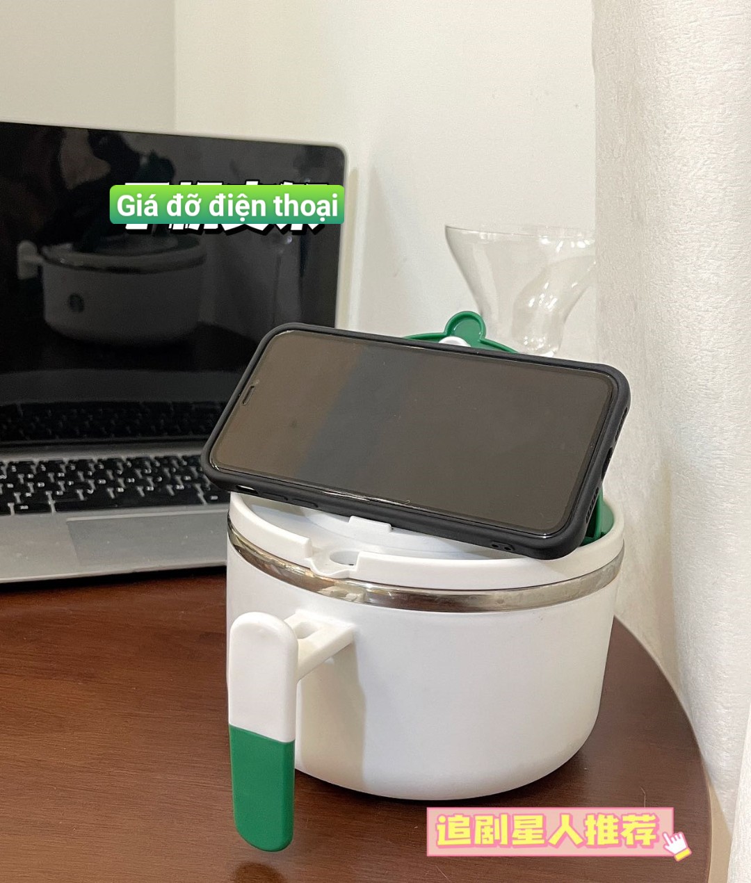 👉🏻Thiết kế tận dụng tối ưu mọi tính năng của chiếc hộp, thiết kế tay cầm có thể cài đũa đảm bảo vệ sinh. Phần nắp làm giá đỡ điện thoại, các mọt phim vừa ăn vừa xem phim chill lúc nghỉ trưa tuyệt cú mèo luôn