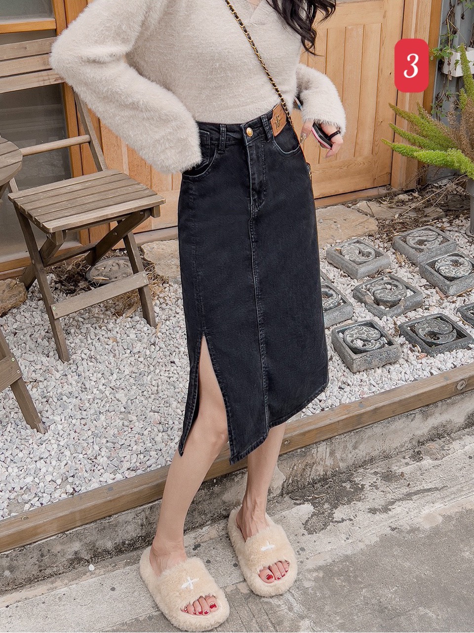 Váy jean dáng dài xẻ tà với phông hay sơ mi đều xinh lắm ạ