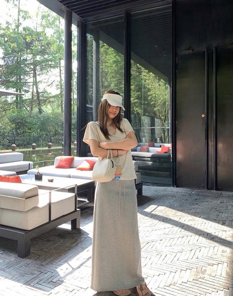 Tầm này cứ chân váy thun Wgwe C25102005 mang là thoải mái nhất :))