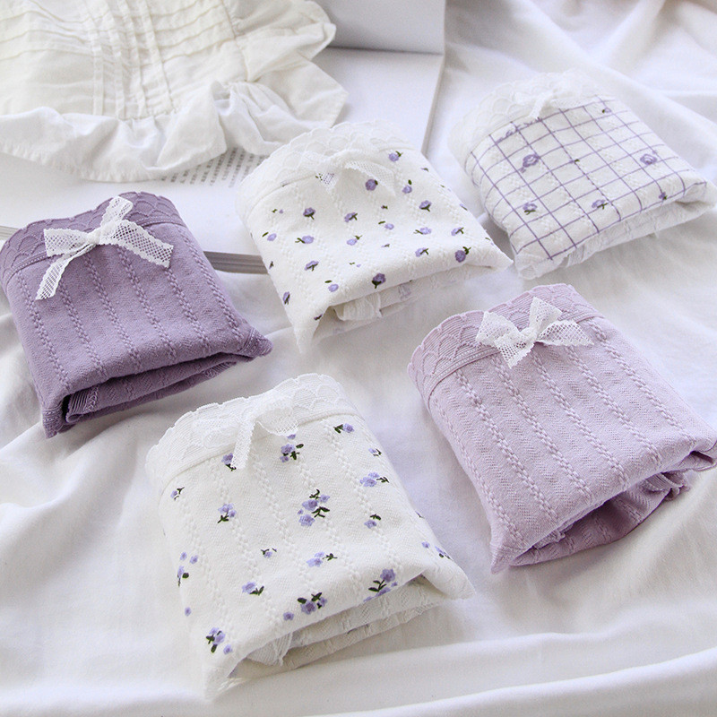 ♥️♥️ Set 5 quần chip viền ren tím hoa nhí Lolita