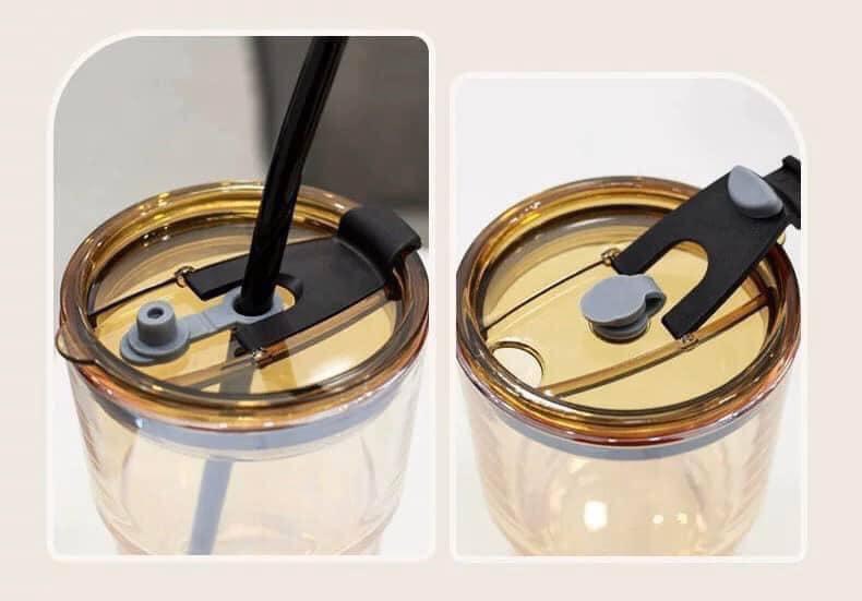 Cốc này chịu lực khá tốt , Phần nắp có lỗ nhỏ để ống hút khi cần và lỗ to hơn để đưa ly khi uống nước bằng miệng. Cả 2 vị trí đều có nắp đậy lại khi không sử dụng để tránh bụi rơi vào nước.