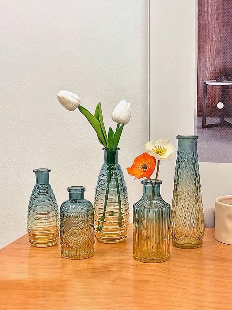 ✔️ Lọ hoa được làm từ chất liệu thủy tinh với nhiều màu sắc và kiểu dáng hiện đại theo phong cách châu Âu, dễ dàng phối với bất kỳ loại hoa nào.