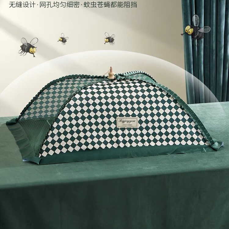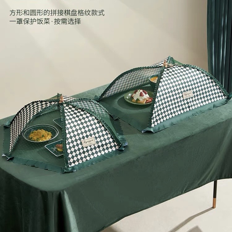 Lồng bàn cũng phải theo trend nha cả nhà ơi. màu xanh lá và cam kết hợp hoạ tiết caro ko thể nào thời thượng hơn.