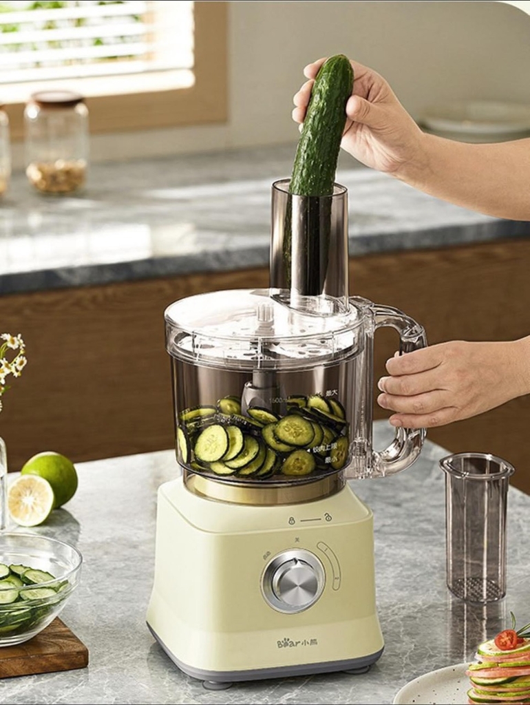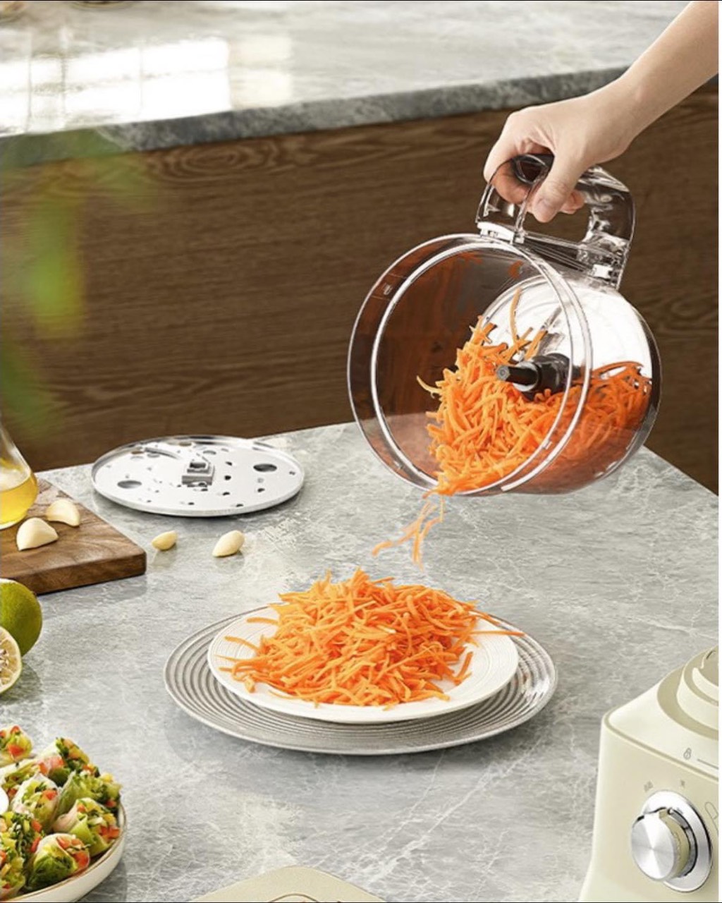 Máy xay đa năng: vừa cắt lát rau củ, bào sợi, xay cả thịt, nhồi dc cả bột làm bánh mới ác chớ kaka.
