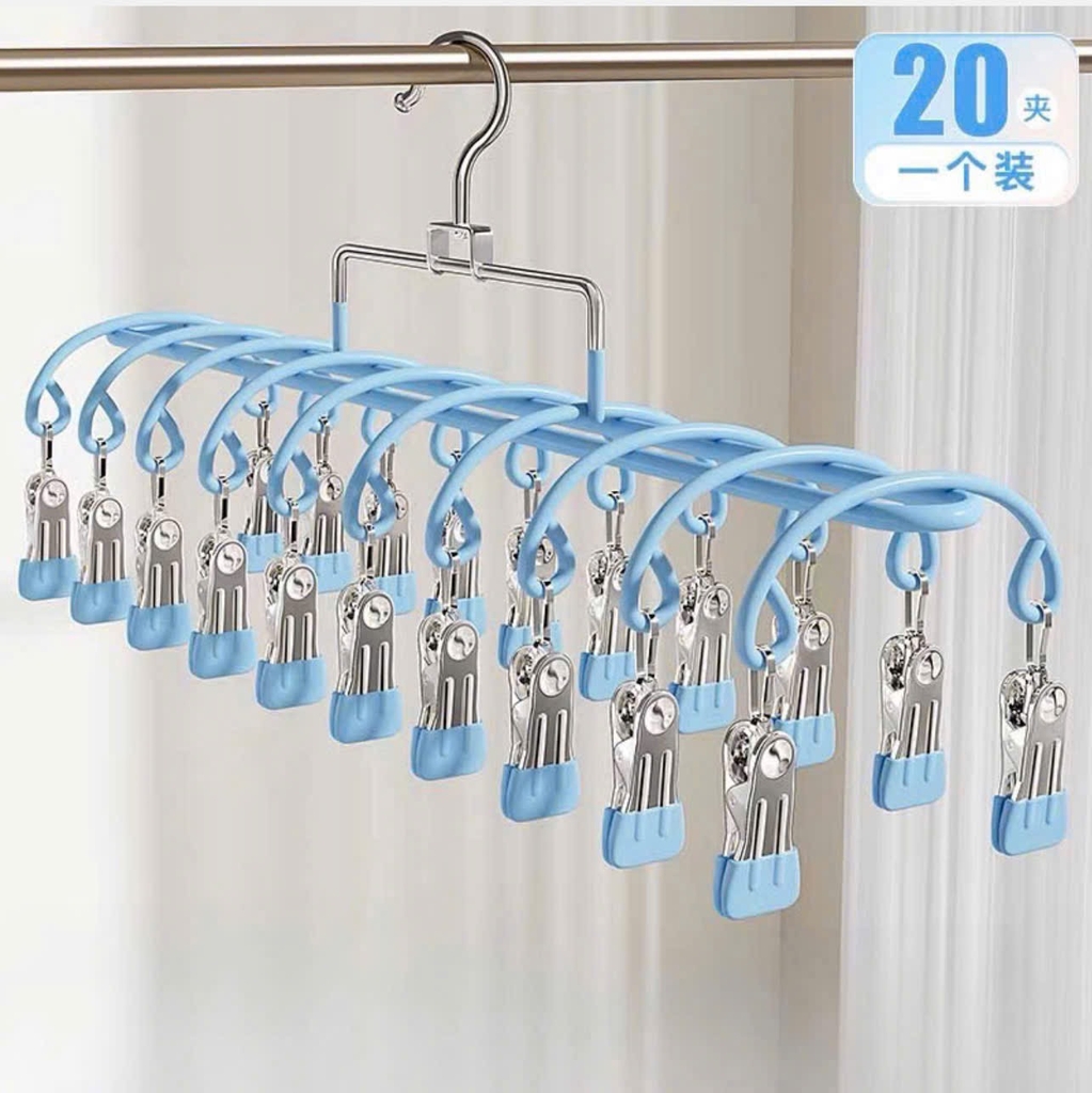 Thiết kế với 20 kẹp giúp treo được cùng lúc nhiều đồ, tiết kiệm không gian.