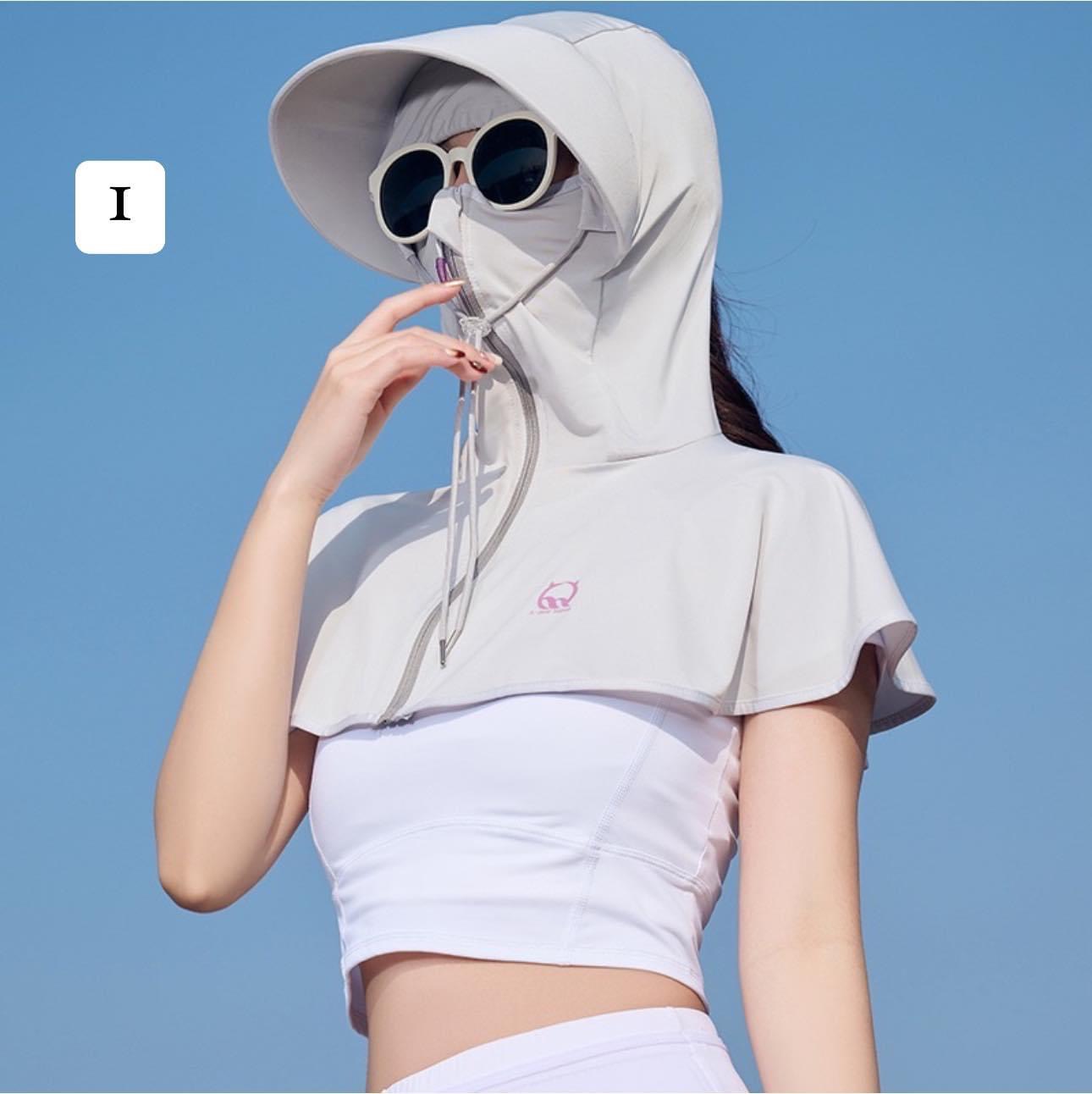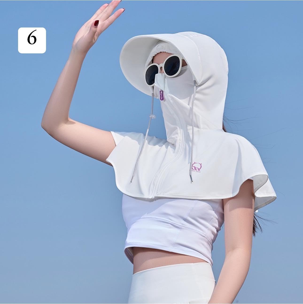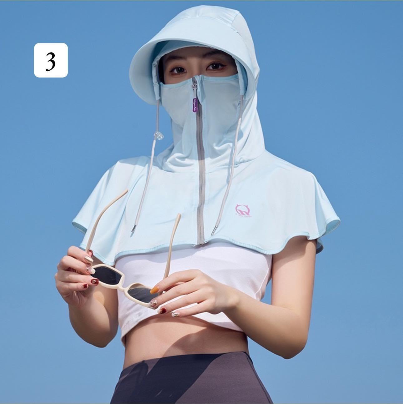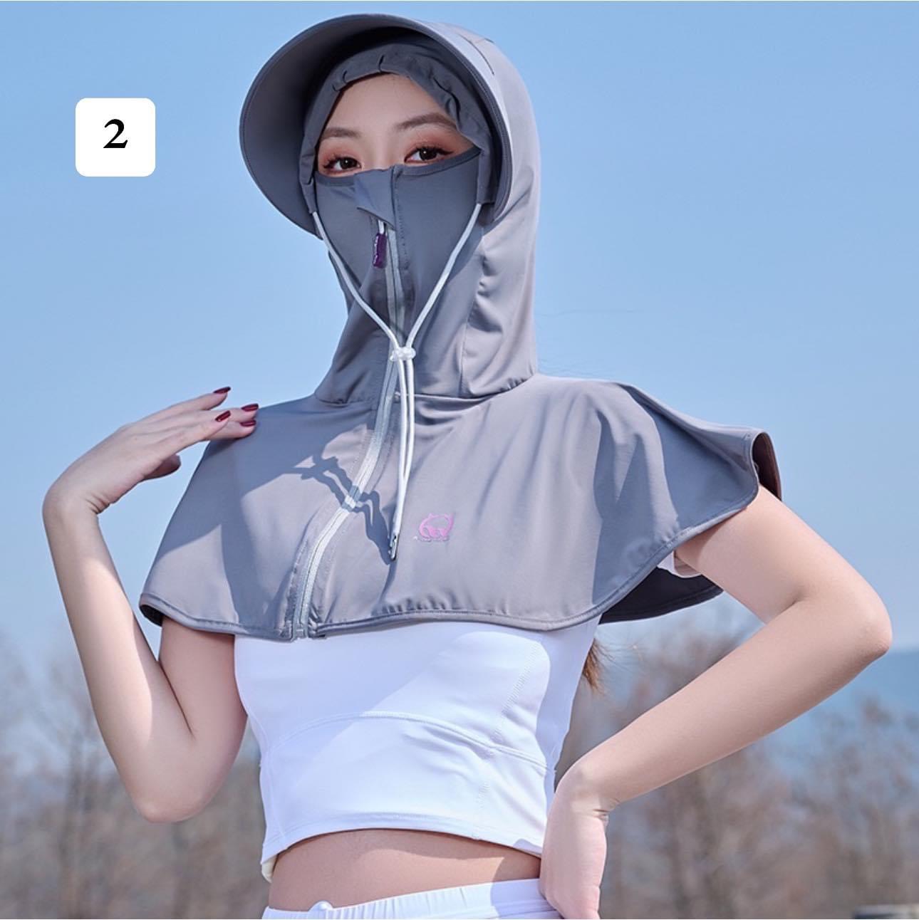 Choàng vai che chắc chắn được cả vùng cổ và gáy. Thiết kế sau mũ có lỗ nhỏ để bỏ búi tóc ra ngoài, giúp ko vị vướng và nóng bí