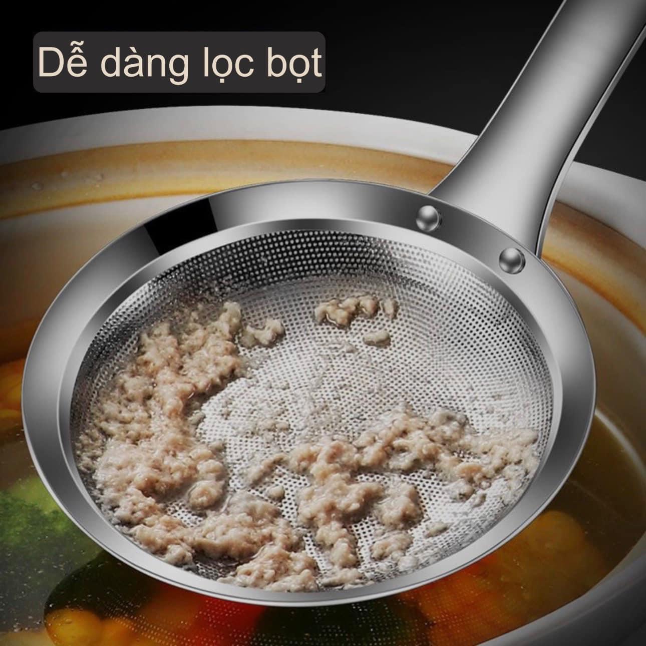 Dùng muôi lỗ hay vợt bọt khó xài. Em này tích hợp 2in1 dễ dùng lắm ạ 😘