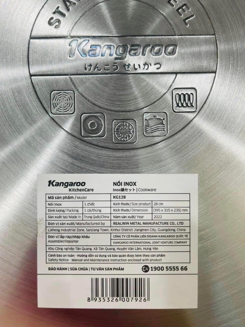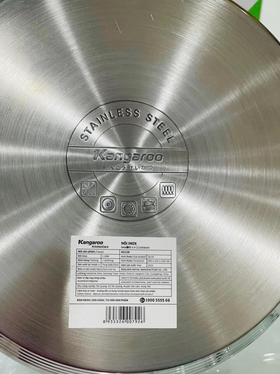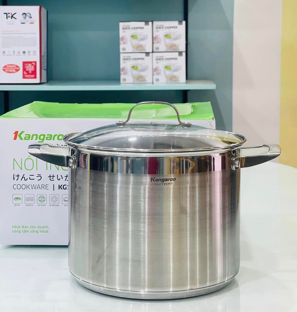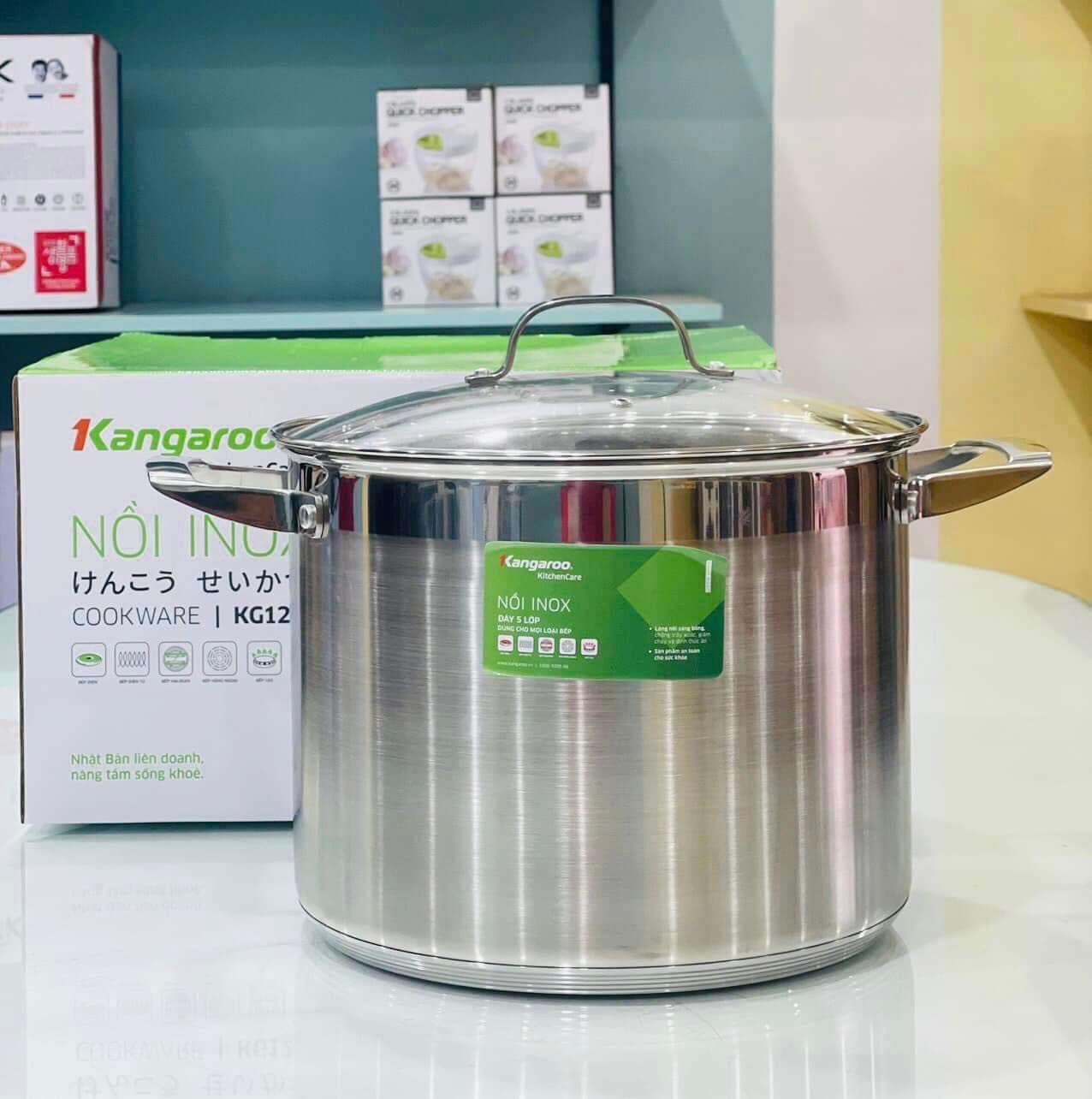 Nồi luộc gà 28cm 12L đáy 5 lớp KG128 của Kangazoo. Size to luộc vừa 2 con gà, sử dụng được với mọi loại bếp: bếp điện từ, bếp hồng ngoại, bếp điện, bếp than… rất tiện lợi.