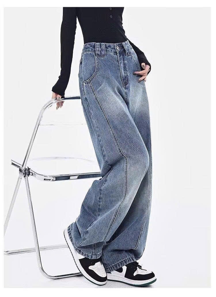 ‼ ‼ ‼ Quần jean ống xuông rộng 2 vạch gân sọc C25101701 cho chân thon dài hơn 🤩