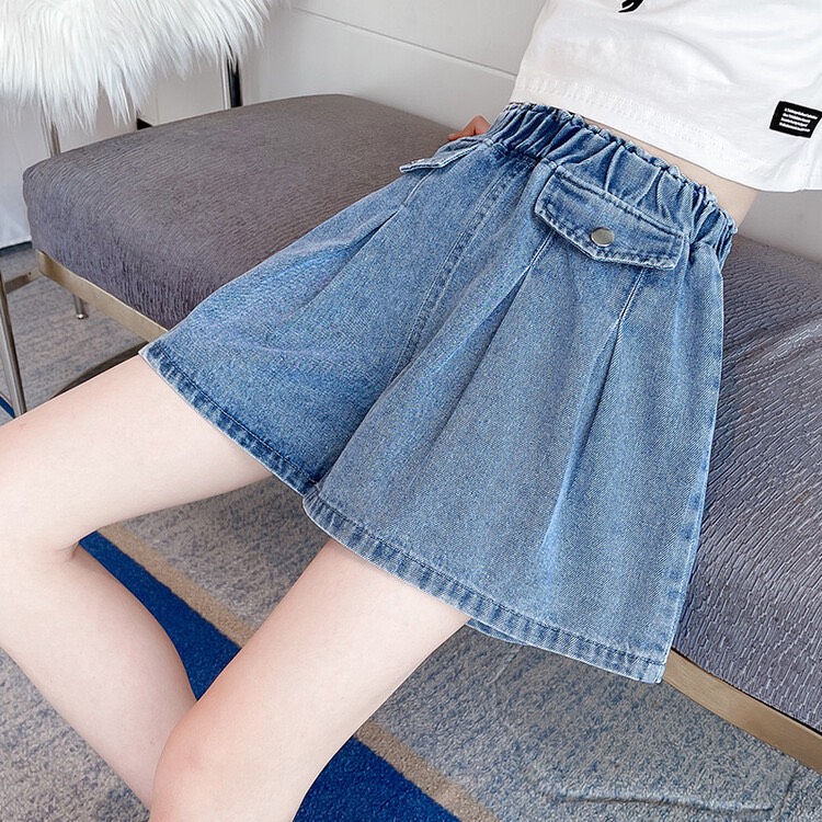 Quần sooc jean dáng váy bé gái sz đại lên form đẹp lắm nha. Bé mặc vừa tiện vừa xinh ah