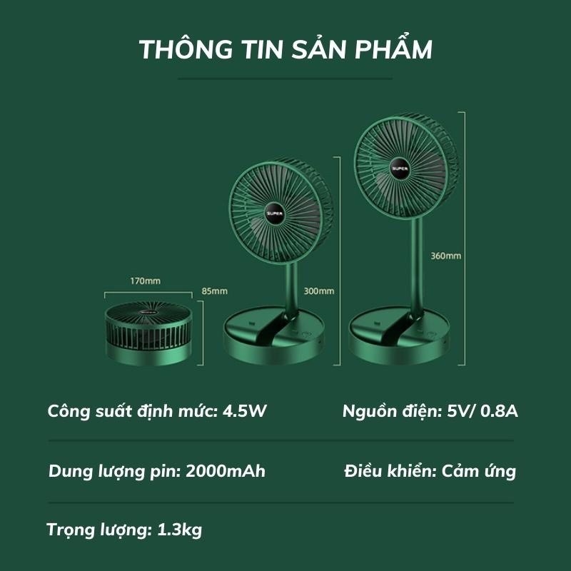 QUẠT TÍCH ĐIỆN SẠC PIN, GẤP GỌN SUPER dung lượng 2000mAh - #109k