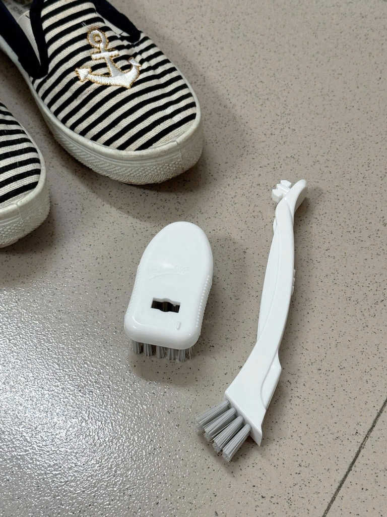 ✔ Chổi thiết kế gồm 2 đầu, 1 đầu cọ to dùng để cọ giặt mặt và đế giày, 1 phần đầu cọ nhỏ dùng để cọ sạch các khe rãnh ở bên hông và phần đế