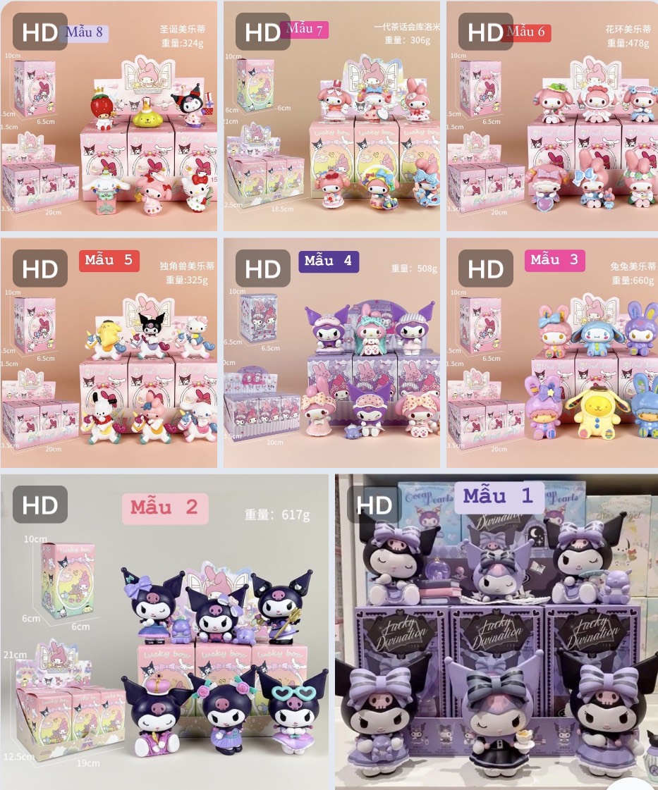 Set 6 hộp quà bí mật kuromi ko trùng mẫu, con e nó mê lắm, vô siu thị mua 280k/hộp lẻ 1 con ý, set 6 con rẻ cũng phải hơn 600k.