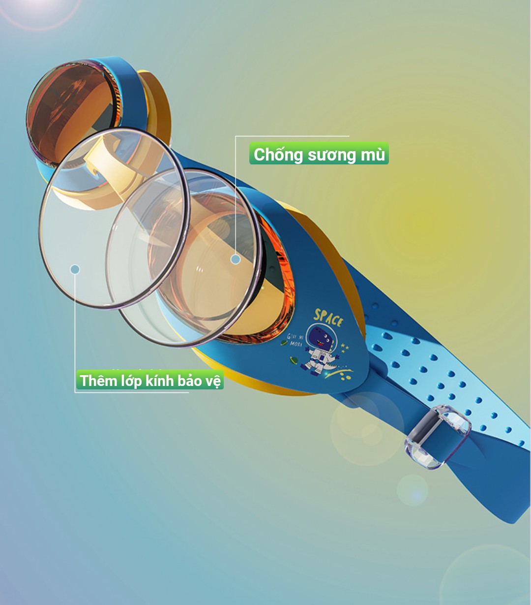 - Có 4 set màu. Chất liệu: kính (polycarbonate, polyester, silicone), mũ (silicone)