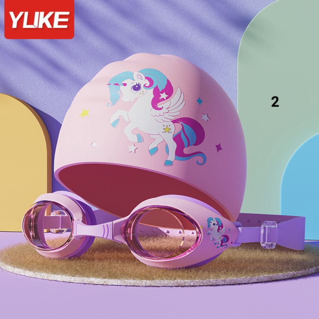 SET MŨ BƠI SILICONE + KÍNH BƠI HÃNG YLIKE CHO BÉ 3-12 TUỔI
