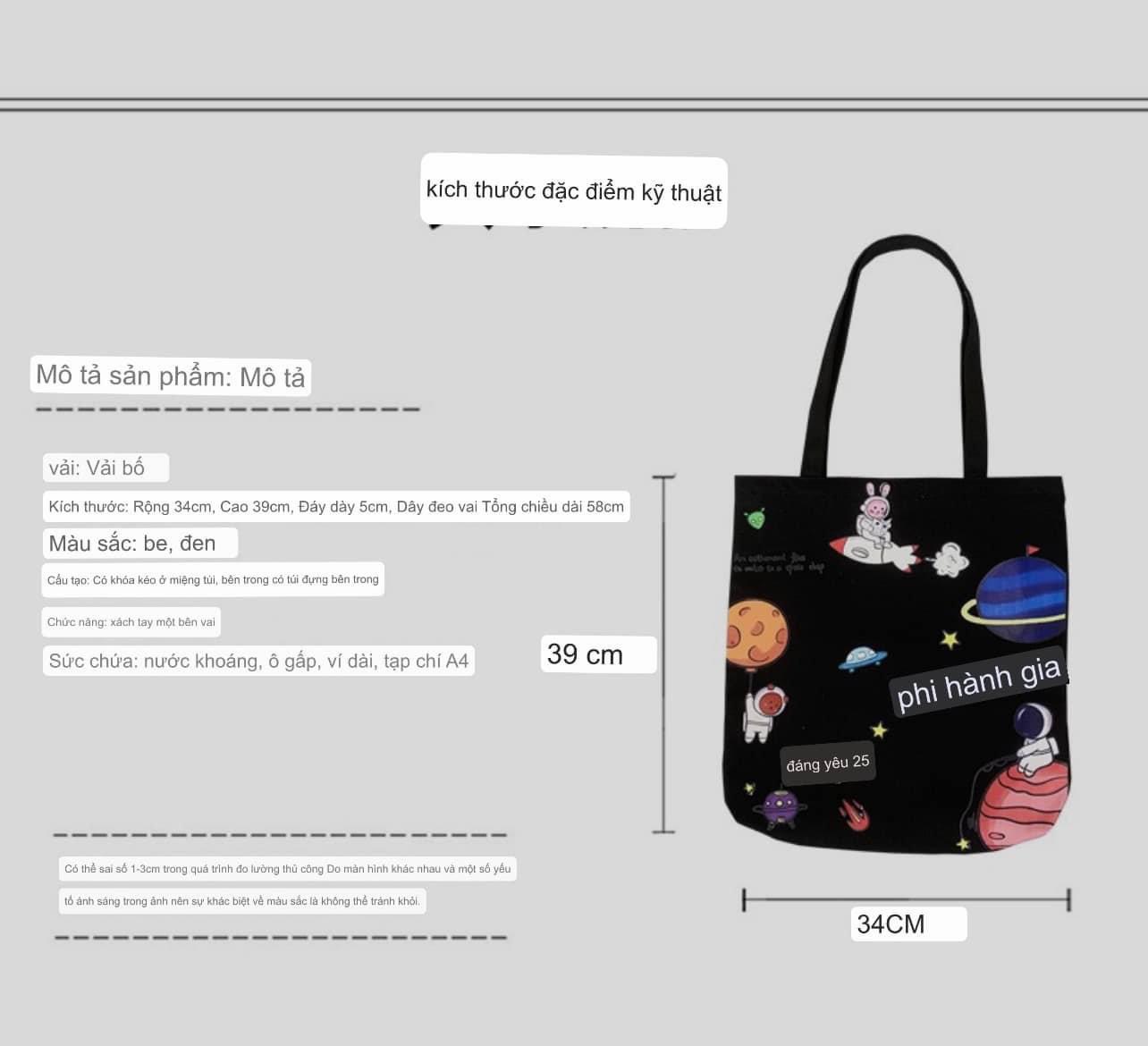 👉Kích thước : rộng 34cm×cao 39 cm, đáy 5cm. Dây đeo vai tổng chiều dài 58cm.