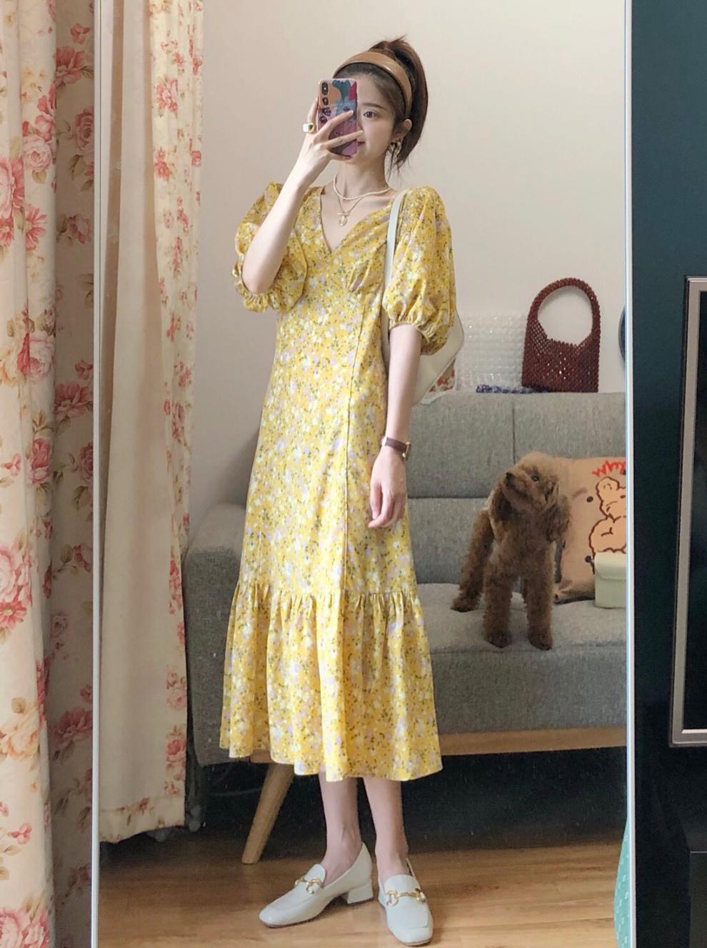 Váy vàng hoa nhí dáng đuôi cá - 345k/1c